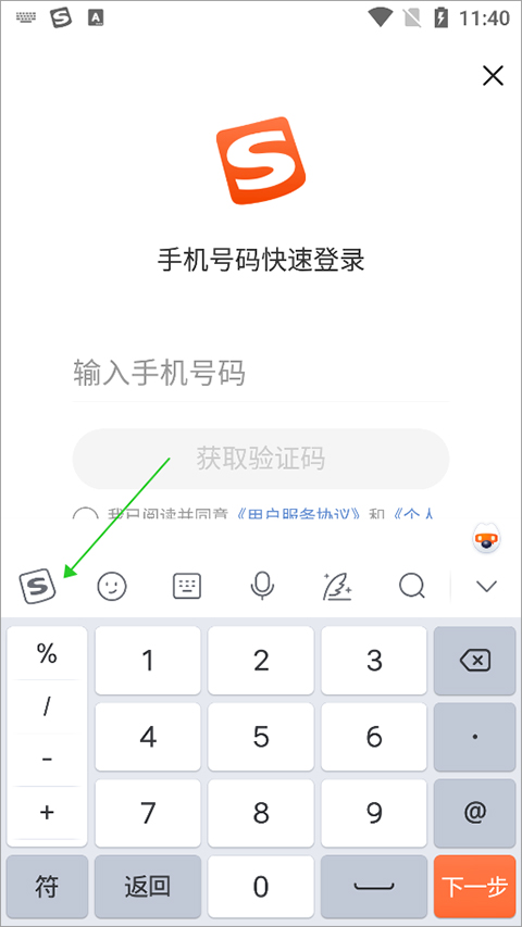 1、用户在输入文字时,可以在酷狗输入法键盘上点击左上角的logo图标(下图绿色箭头所指)
