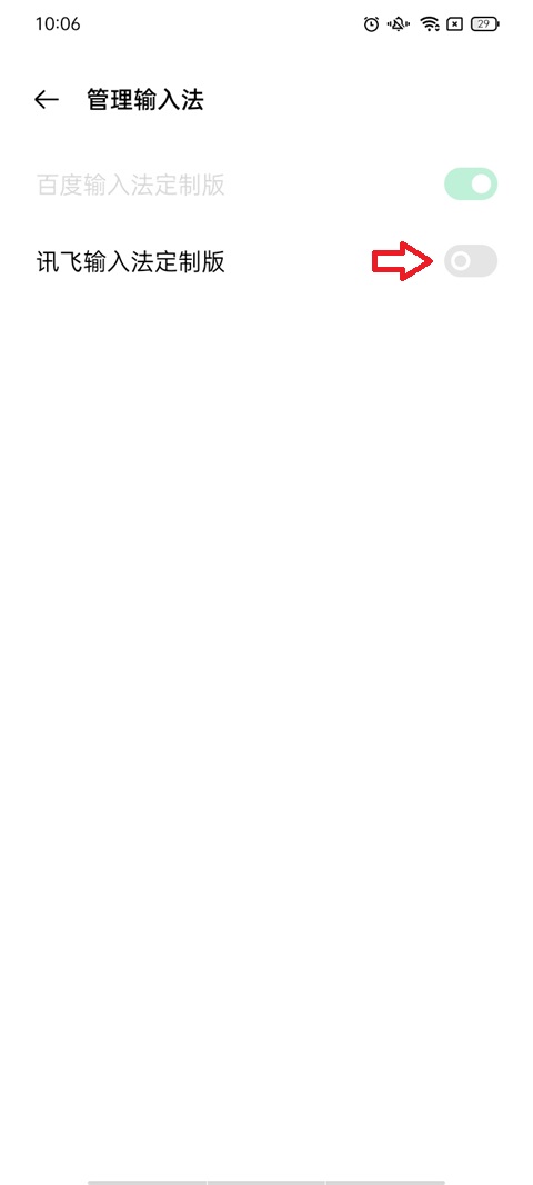 3、点击管理输入法选项,我们就可以看见讯飞输入法oppo定制版了;