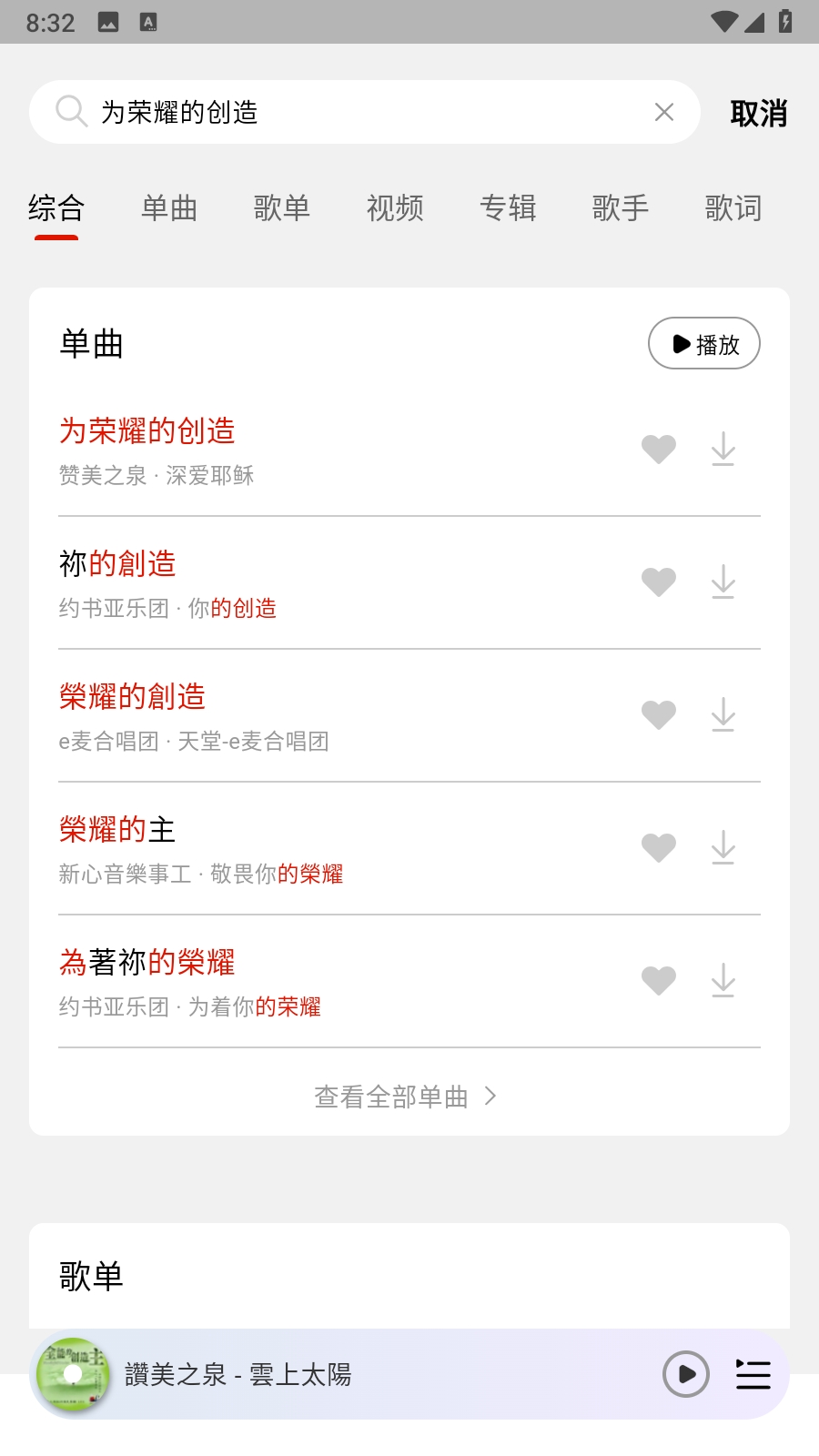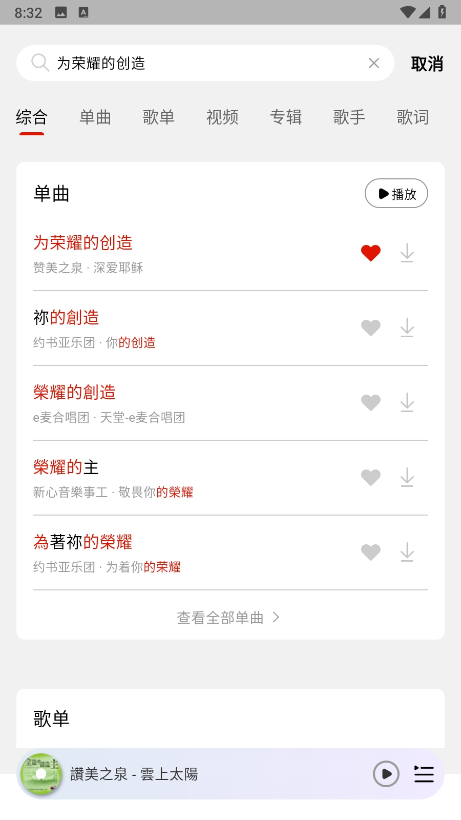 2、然后通过搜索找到自己想收藏的歌曲。