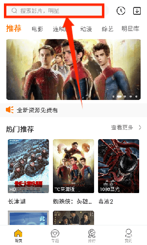 1、启动应用后在顶部搜索栏输入影片或艺人名称,查找相关影视资源。