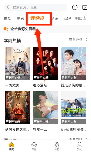 2、进入连续剧分类浏览本周热门剧集,从中选择感兴趣的内容观看。