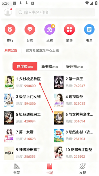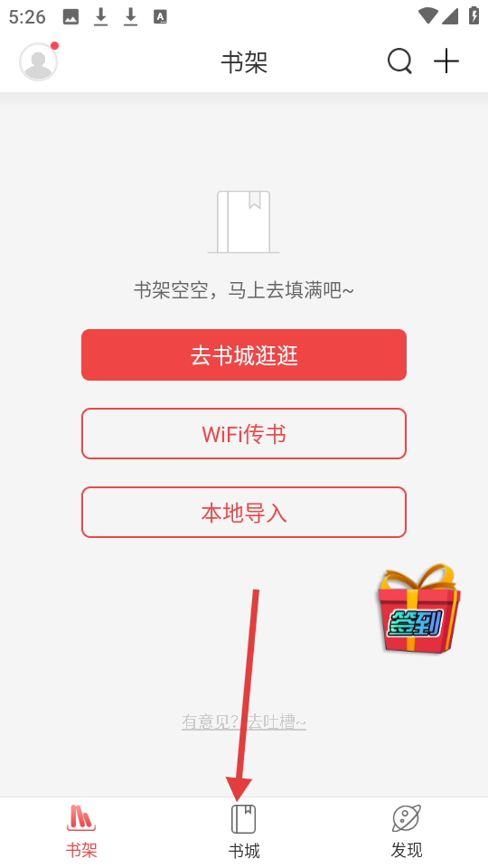 2. 在书架界面点击【书城】,即可进入书城界面。