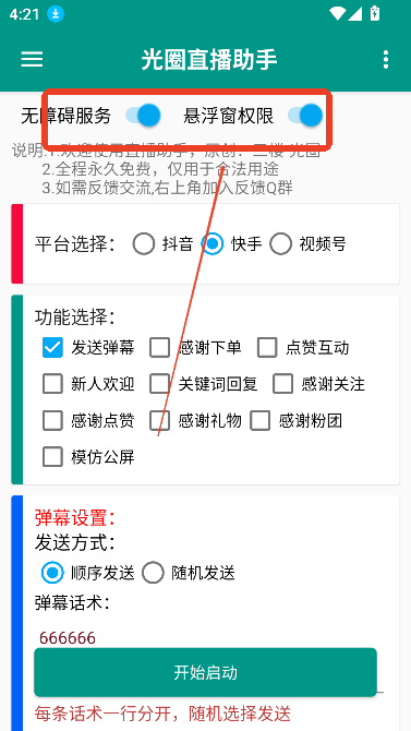 光圈直播助手app最新版本是专为直播玩家打造的直播辅助工具,兼容抖音、快手、视频号等多平台,能设置直播弹幕参数、添加各类直播互动内容以增强直播氛围、提供更多直播乐趣,且基本无付费项目可放心下载使用,用户可通过本站获取该app并开启便捷直播辅助体验 。