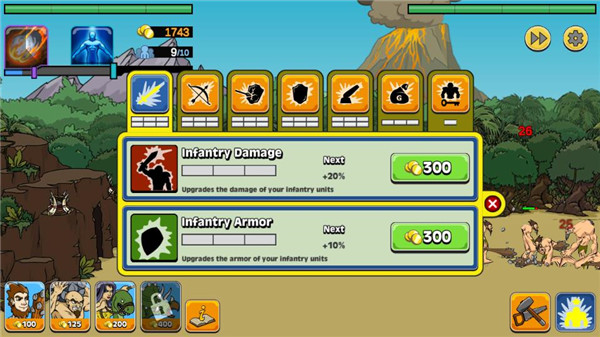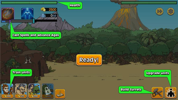 1、训练一大批军队,从穴居人骑恐龙到世界大战的机械化军队,你甚至可以建设未来的机器人部队。