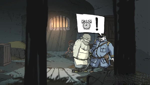 2、来到火车站后可以说是进入正式游戏部分,玩家的任务就是要将欺凌左侧男子的士兵赶走,调查场景起点处的链条并向下拉动,可以将左侧的士兵赶走。