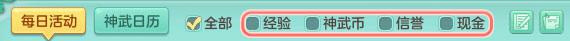 在日程界面上方,少侠们可以通过勾选自己想要的资源,快速查找能够获取该资源的活动。