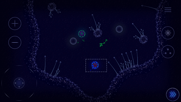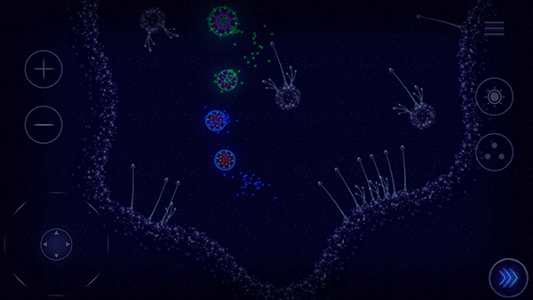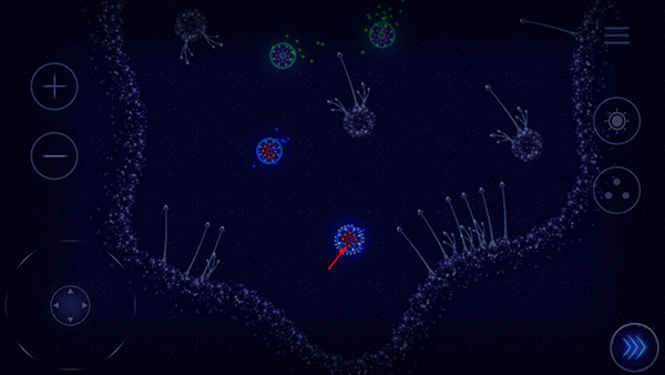 2、进入游戏后,你将操控蓝色的细胞,点击细胞再点击到目的地即可移动,