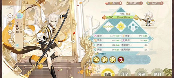 高贵的百分比伤害,自身提攻和群体眩晕,不俗的基础伤害,前期很适合开荒,后期虽然伤害乏力,但也属于群控中输出较高的一档。