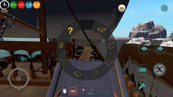 3、左上角是角色的耐力值,下方是持续奔跑,自由移动轮盘,右侧是瞄准、跳跃以及攻击,还是很好区分的,下方是物品栏,点击手按钮就可以拾取道具。