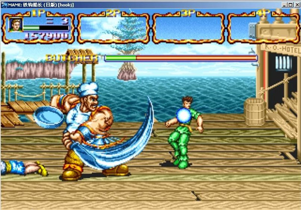 第六关:铁钩船长HOOK:终极BOSS,左手持剑右手铁钩的船长。招数用剑刺人,或者跳到跟前抓住人,然后又钩子捅,还有就是开枪,其实不是很难打,不是因为他强,而是会出现大量各种的帮手,还有第五关的BOSS总是后面的炮台开炮。(最后结局:战败逃跑。一会儿后回来。然而他的铁钩不慎卡在鳄鱼的肚皮里。结果HOOK被鳄鱼吃掉)