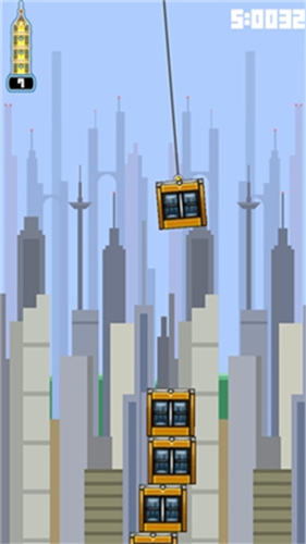 右上角显示你刚建起的摩天楼的人口以及它将取代的建筑,你建造摩天楼是为了达到目标高度,目标高度显示在屏幕左下方,你的楼顶安放的越好,得到的奖励越多。