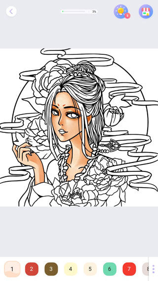 2、进入绘制界面,在下方点击与图片人物对用的数字颜色即可进行填色;