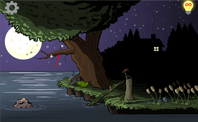 3、等树枝掉落在河里后再点一下让虫子移动到树枝上